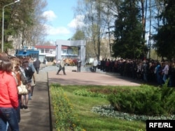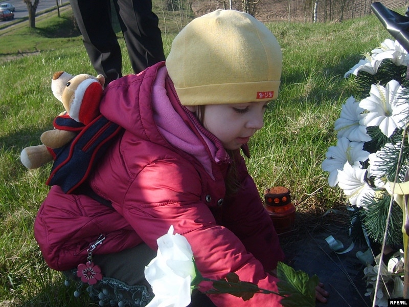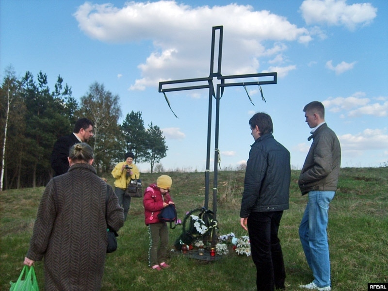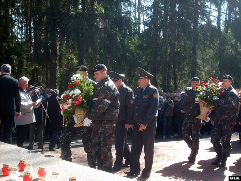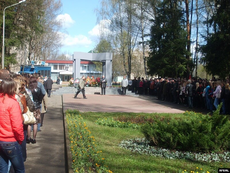 Пасьля непрацяглых прамоў апазыцыянэры запалілі сьвечкі памяці, павязалі крыж чорнымі, з радыяцыйнымі знакамі, стужкамі, хвіліну памаўчалі, усклалі кветкі і сышлі.