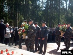 Нязвыкла шмат міліцыянтаў і вайскоўцаў было затое на афіцыйным мітынгу. Міліцыянты атачалі пэрымэтар пляцоўкі, дзе праходзіў мітынг, ды ўскладалі кветкі да памятнага знаку.