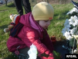 Першай усклала кветкі да крыжа шасьцігадовая Ялінка Салаўёва