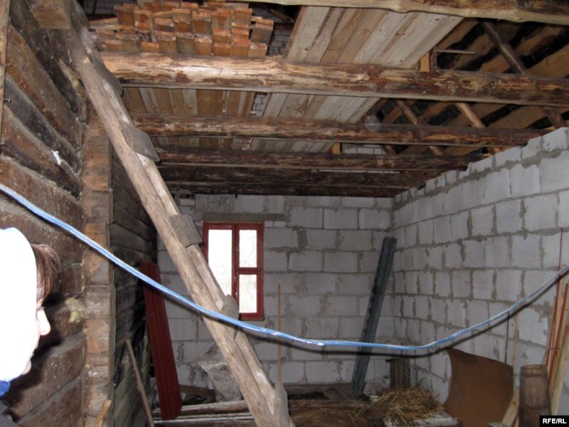 У Натальлінай палове сьвежапафарбаванай звонку хаты поўны развал — недабудаваны другі паверх, няма падлогі, убранства.