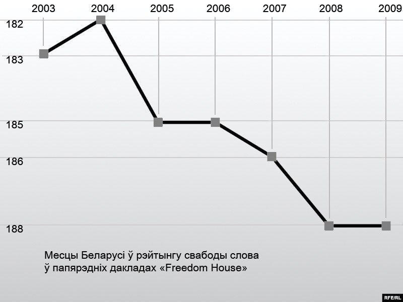 Беларусь традыцыйна ў рэйтынгах свабоды слова " Freedom House " трапляе ў хвост сьпісу, як краіна зь несвабоднай прэсай.