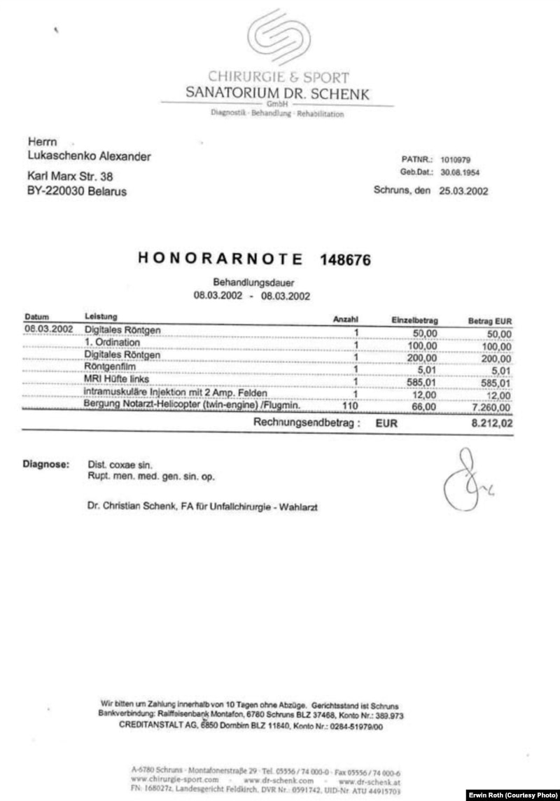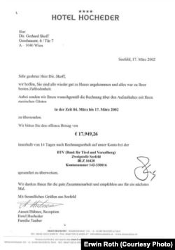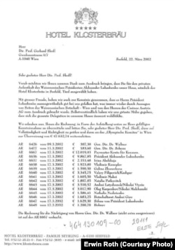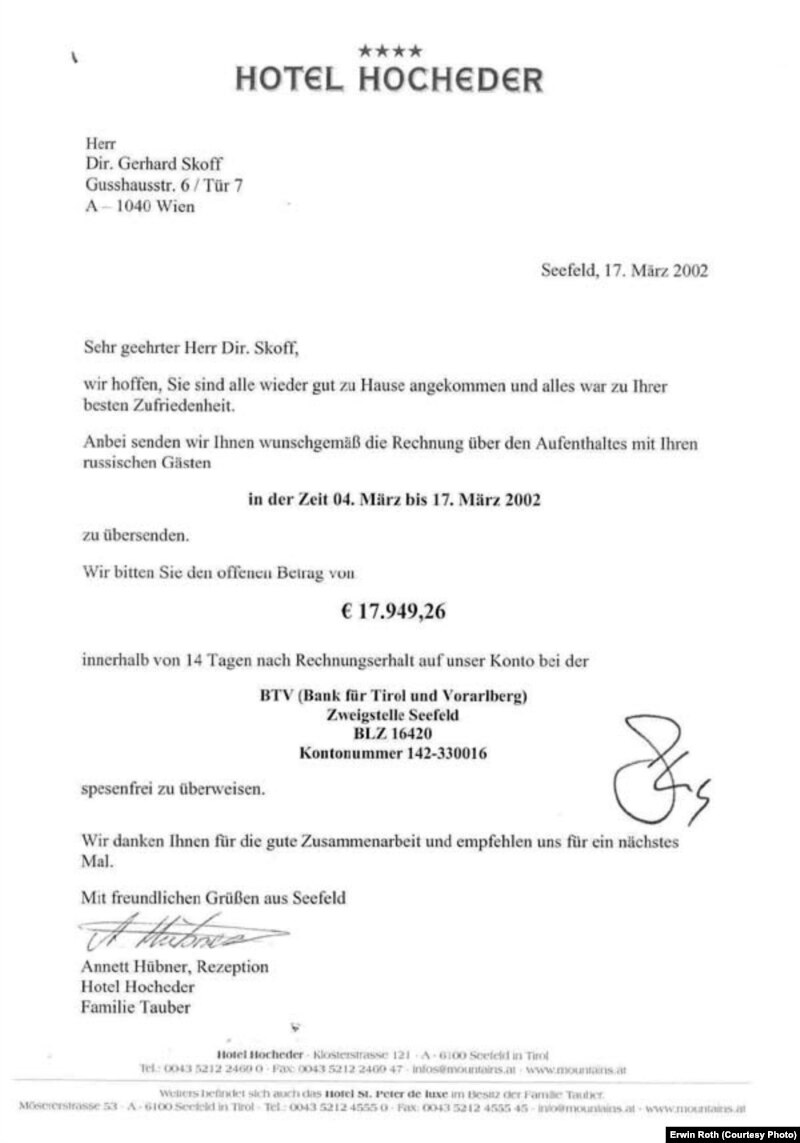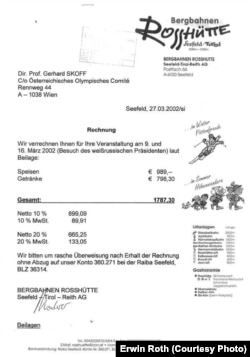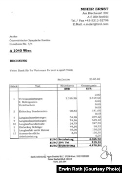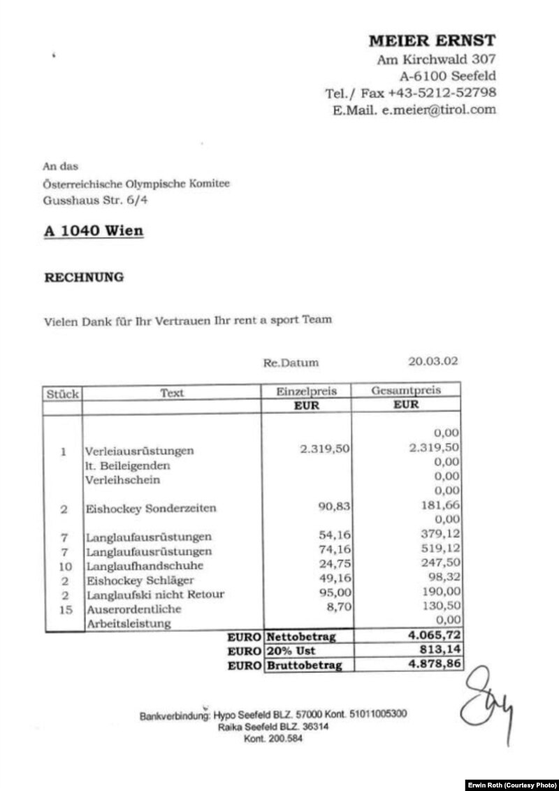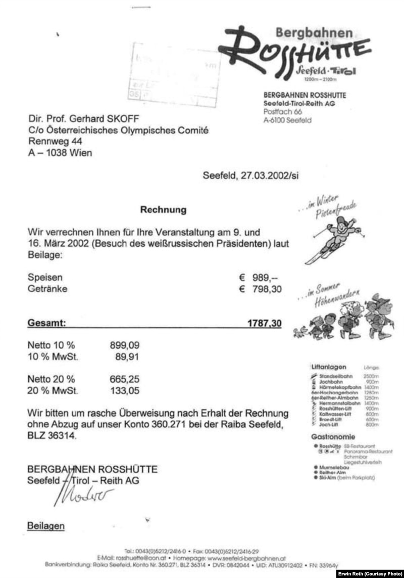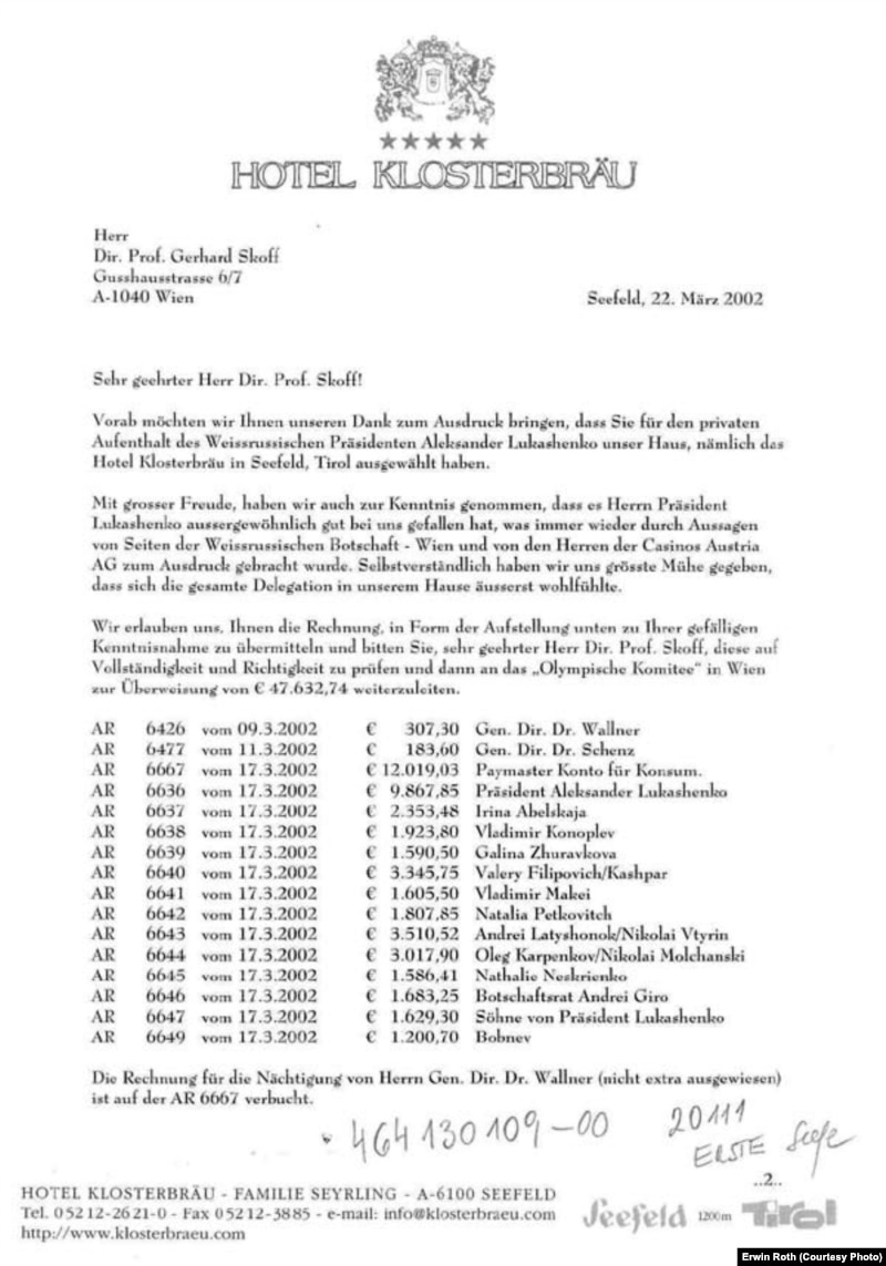 Эрвіну Роту, паводле ягоных слоў, вельмі пашанцавала: праз 8 гадоў захаваліся ўсе фінансавыя дакумэнты таго адпачынку агулам на 200 тысяч эўра. Афіцыйна яны выпісваліся на НАК Аўстрыі, аднак абышлі афіцыйную бухгальтэрыю.