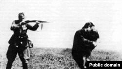 Гэтая невядома чыя фатаграфія, здаецца, абышла ўвесь сьвет. Але найбольш яна тыражавалася ў Савецкім Саюзе. Нямецкі вайсковец (як выглядае, афіцэр) страляе ў патыліцу жанчыне, якая прыціснула да грудзей дзіця, захінула яго рукамі і хоча ад кулі ўцячы.