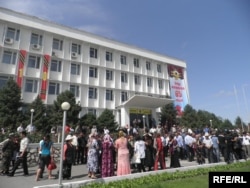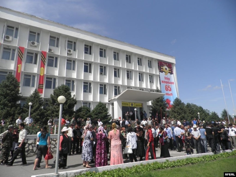 Паведамляецца, што на фасадзе будынкаў вывешаныя партрэты Бакіева, а таксама лёзунгі: «Бакіеў — наш прэзыдэнт», «Бакіеў — для кіргіскага народу», «Мы зь легітымным прэзыдэнтам».