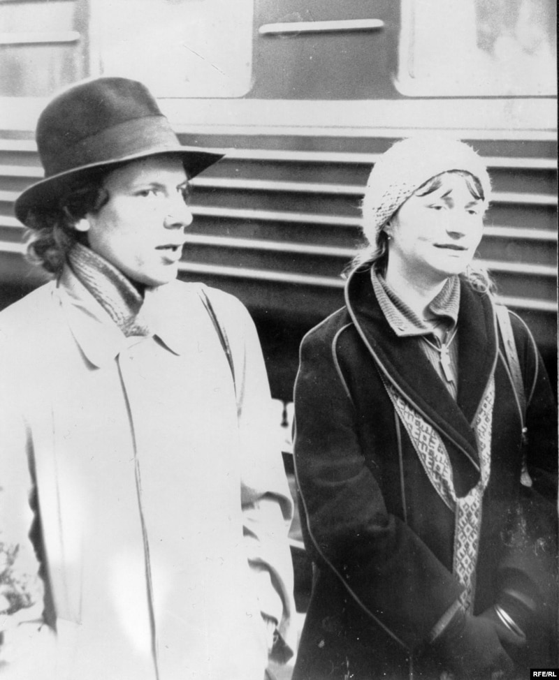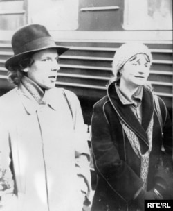 Тацяна Шчасная і Валерыян Янушкевіч пасьля Гуканьня Вясны ў Заслаўі, 1982 год.