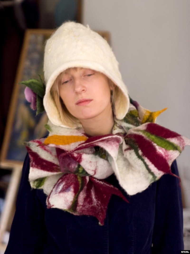 Тацяна: “Прыемна, што там спалучэньне ўсяго – і колеру, і формы, і на ўсіх этапах... там няма сумных этапаў. Я ня ведаю, што гэта такое. Што хочацца, тое й робіш. Можаш і пано, і шалік, і капялюш, і тапкі. Можаш плед, палітон, канапу... Што заўгодна. Пакуль што яны, як блінцы, разьлятаюцца. Я не пасьпяваю нават... Нават да крамаў не даходзіла яшчэ.