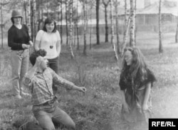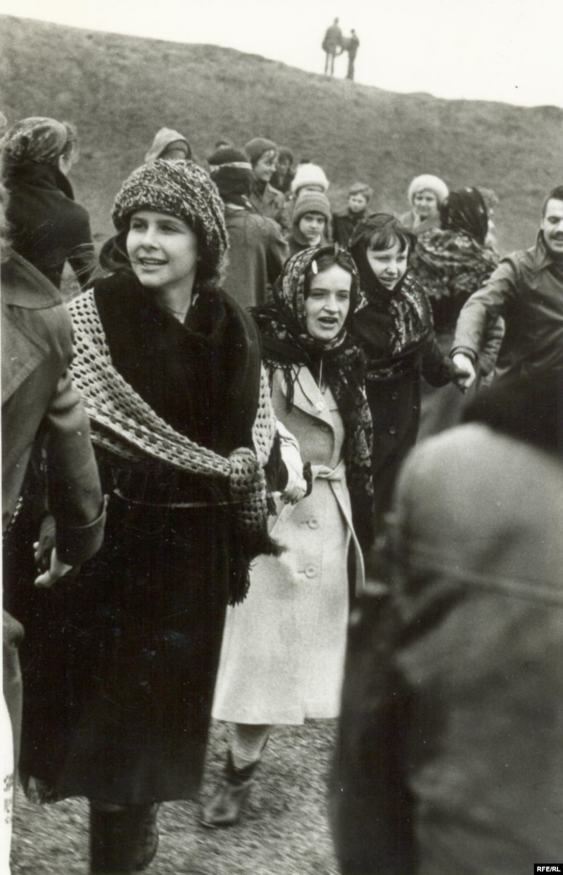 Лада на Гуканьні Вясны ў Заслаўі, 25 красавіка 1982 году. За ёю Таня Лаўрыновіч, Вэрця Лазоўская і Сяржук Цімохаў.