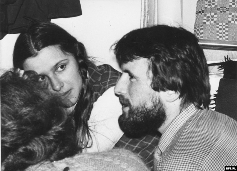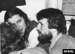 Лада Шчасная і Алесь Краўцэвіч на дні народзінаў Тацяны Лаўрыновіч, пачатак 1980-х.