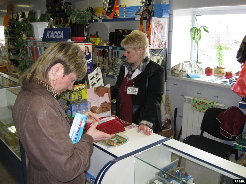 У пустэльнай з раніцы гандлёвай залі знаёмлюся з прадавачкай, 39-гадовай Жанай Нікалайчык. 20 год як пасьля разводу з мужам перабралася да бацькоў у Сёмкава. Але лічыць, што пашанцавала апошнія тры, як стала працаваць у «Дыянісе».