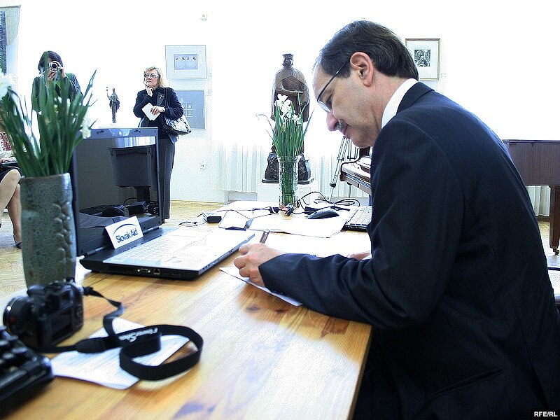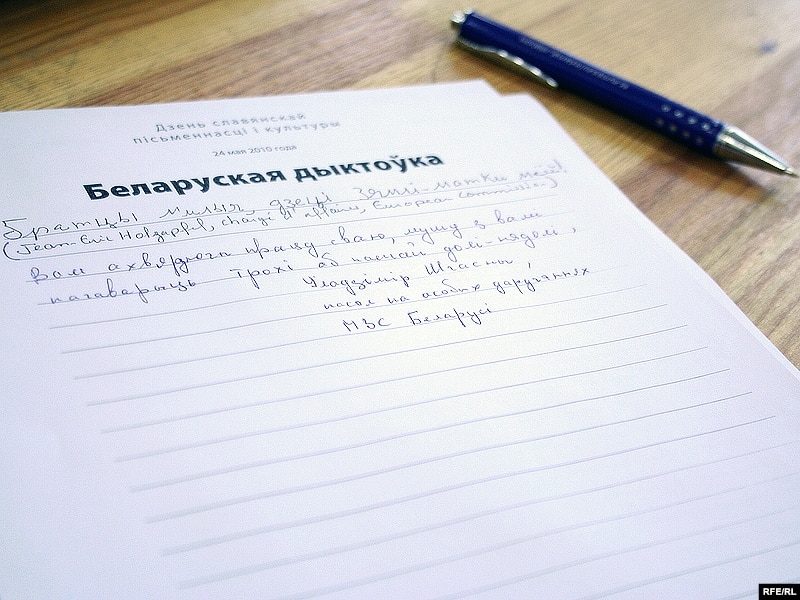 "Давайце ўздымем гэтыя келіхі за ўсе эўрапейскія мовы, уключна зь беларускай, якая аб'яднала ўсіх нас сёньня дыктоўкай".