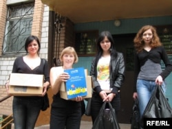 Валянтэры на ганку сьледчага ізалятара на вуліцы Кніжнай (другая зьлева — Ірына Кучвальская).