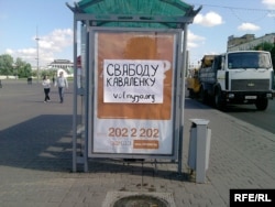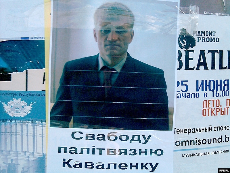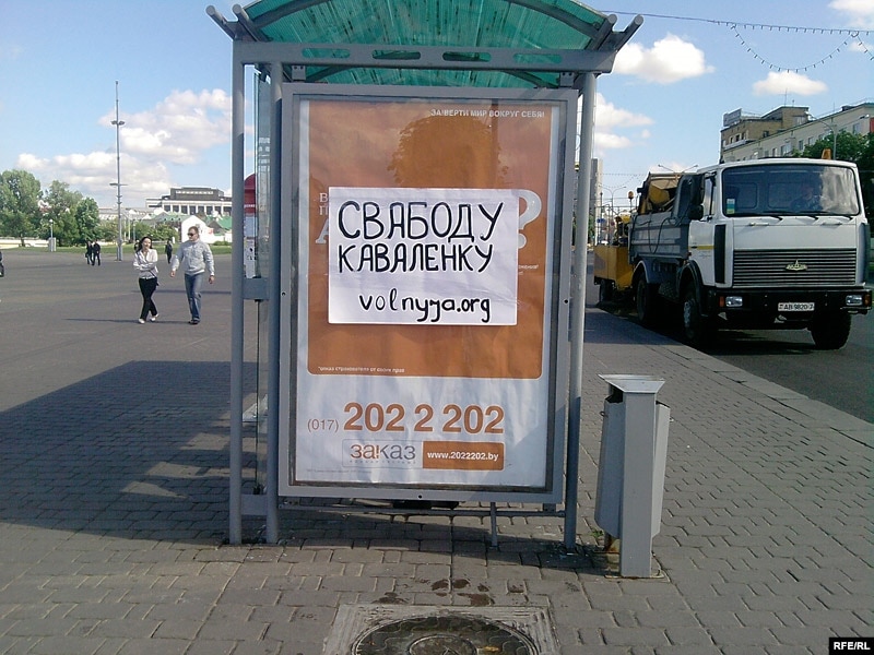Актывісты руху «Вольная моладзь» расклеілі ў Першамайскім і Фрунзенскім раёнах Менску ўлёткі з партрэтам Сяргея Каваленкі.