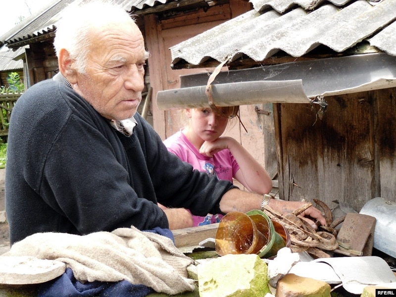 «Я сам нічога не раскопваю. Проста праходжуся так раз-пораз, калі з сабакам гуляю. Вось бачыце? Вось шкло якое было, бутэлечкі розныя…»