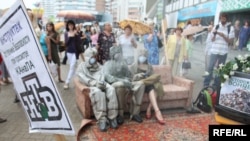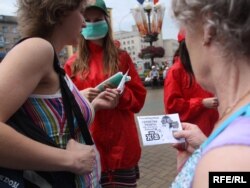 Адзін з удзельнікаў акцыі праз мэгафон крычаў, што тэлеканал НТВ сьмярдзіць, бо заўсёды падае хлусьню. Ён заклікаў мінакоў далучыцца да гэтай акцыі.