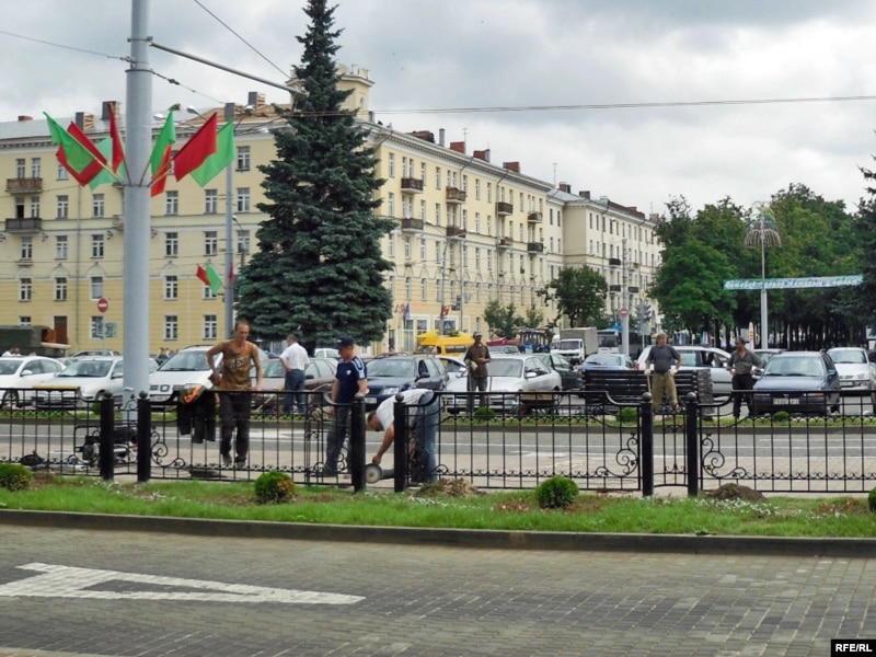 «Вось яны сёньня міма хадзілі, і ўчора хадзілі, і ўрэшце кажуць: „Паступіла скарга на вас“. Маўляў, нейкі чалавек нешта распаўсюджвае. А ці ён мае права гэта рабіць? Пытаюцца ў мяне, ці маю я дазвол. Мне дазвол не патрэбны, кажу, бо тут стаяць не забаронена і я нічога не парушаю. Кажуць, дакладзем начальству. Запісалі мае дадзеныя, прозьвішча, імя. Заўтра, думаю, мяне адсюль прыбяруць. Заўтра ж Лукашэнка прыяжджае! Як жа ж мне дазволяць тут стаяць — я ж буду як бяльмо на воку!»