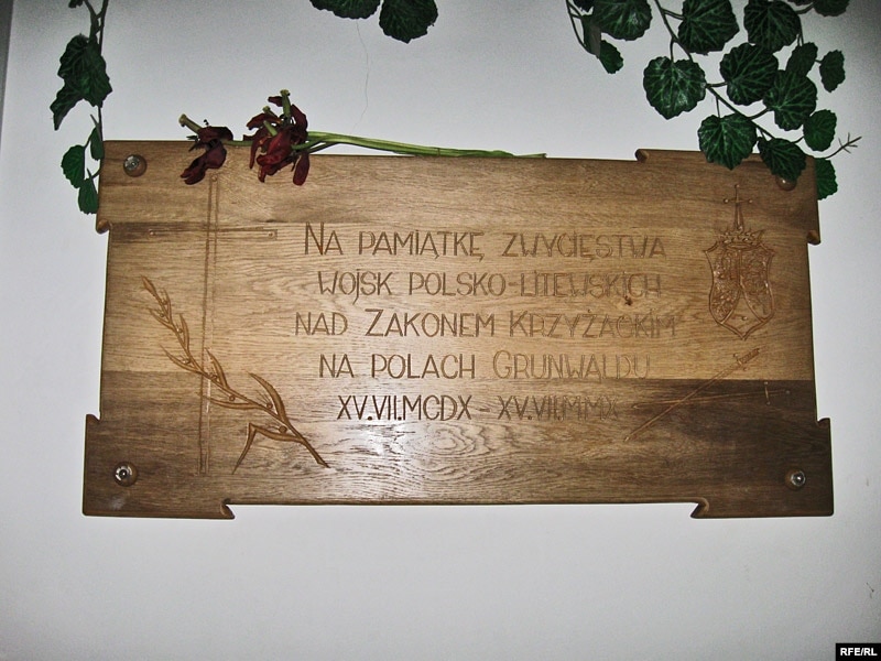 Тую шыльду я сфатаграфаваў. Дзіўнаваты, калі не сказаць больш, быў на ёй надпіс — «На памятку перамогі польска-літоўскіх войскаў над Крыжацкім ордэнам на палях Грунвальду». Зрэшты, «больш» тут жа сказалі сябры «Моладзі БНФ» Сяргей Сідарэнка ды Ўладзімір Круцікаў, што былі разам са мною.