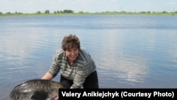 Менскія рыбакі Валеры і Зоя Анікейчык злавілі ў рацэ Прыпяць двухмэтровага сама вагой каля 50-ці кіляграмаў.