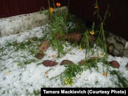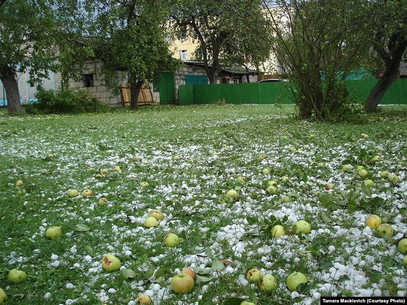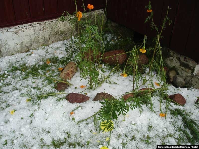 Парывы ветру ў мінулую нядзелю ў Беларусі дасягалі 24 мэтраў за сэкунду, у некаторых раёнах ішоў моцны град, памерам з курынае яйка. Ад граду пацярпеў Мядзел.