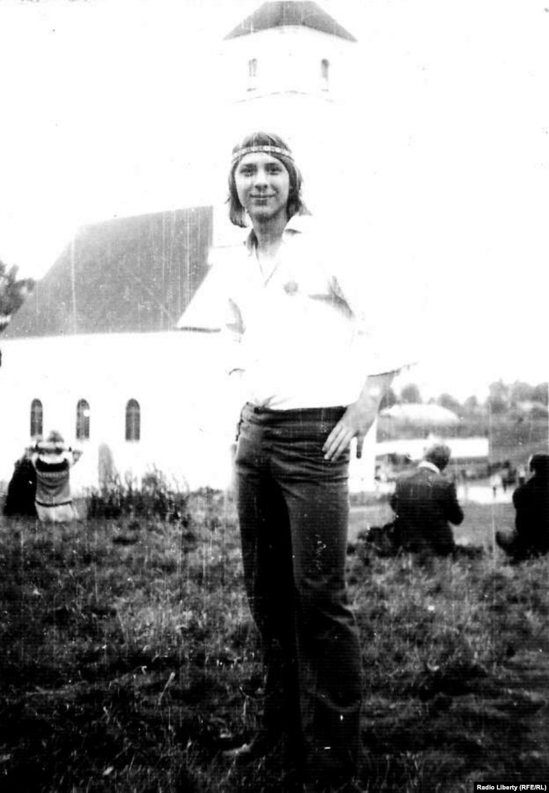Ала: “Ала Савелічава. А гэта мой аднагрупнік. Я ведаю толькі сваіх сяброў, якія там сьпявалі, і песьні, якія там сьпявалі разам. Я была толькі тады ў Прафсаюзах. І нейкія песьні ёсьць яшчэ і зараз, запісаныя ў сшытку”.