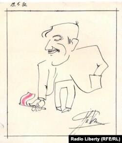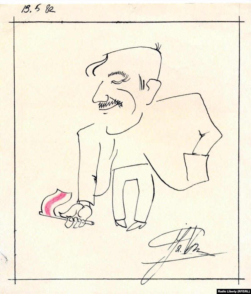 Шарж на аўтара гэтых перадач, намаляваны Яўгенам Валасевічам падчас адной з майстроўскіх зборак, 1982 год.