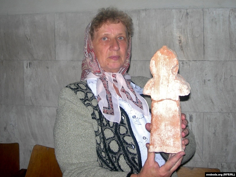 Рудзінская: «Вось цэгла-пальчатка. Уручную рабілася. На паветры сушылася, і вось кошачка прайшлася. А на алтарнай частцы ёсьць шмат адбіткаў чалавечых пальцаў. Прывітаньне зь мінулых стагодзьдзяў. Нас віталі нашы продкі. У ногі трэба кланяцца, што такі храм збудавалі. А мы вось думаем, як яго зьберагчы».