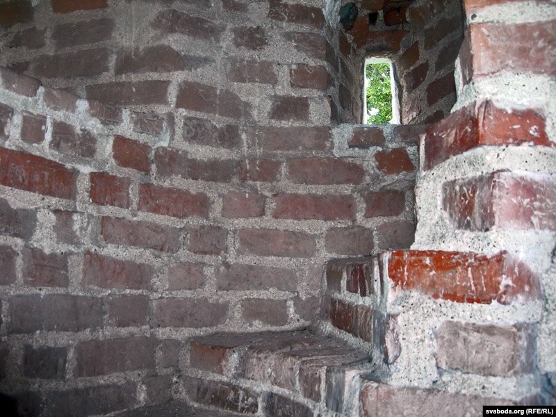Алена: «У нас у храме ёсьць такая цаглінка, якой былі выкладзеныя скляпеньні храма. І нават бачна, адкуль яны былі дастаныя. Цэгла, якая называецца „царская лілея“. Якая сымбалізуе чысьціню і цнатлівасьць Маці Божай. І храм наш асьвечаны ў гонар Нараджэньня Прасьвятой Багародзіцы. Пакажу цаглінку з адбіткам кацінай лапкі. Пакажу вам дахоўкі кавалак, якім быў храм пакрыты. Страха не была раней такой. Пэўна, вы захочаце і на вежы падняцца, каб паглядзець гэта ўсё. У гэтых вежах захаваліся лесьвіцы».
