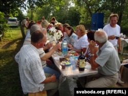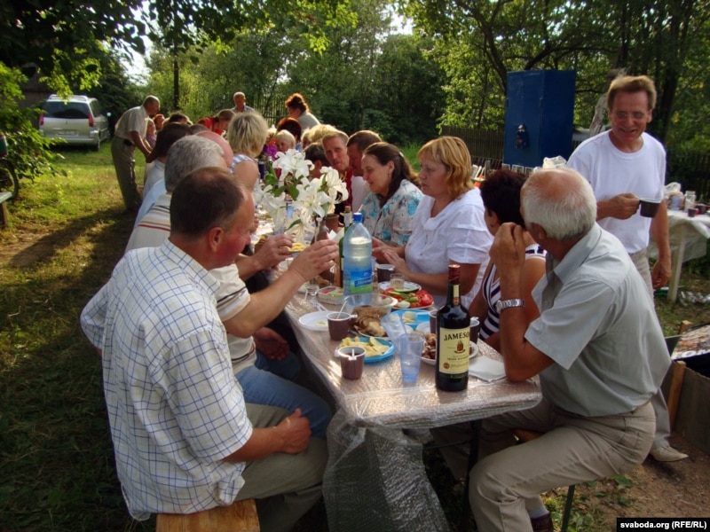 Шчэрба: "Пэўна, недагулялі некалі! (Сьмех.) І захацелася ізноў вярнуцца сюды — танчылі да раніцы. Гэта месца, дзе ты дома. Еду ў Менск, праеду колькі, кажу — я еду з дому. Еду сюды зь Менску — еду дахаты. Гэта шмат значыць! Дзесьці з паловы ліпеня папярэдне пачынаем тэлефанаваць усім. Сустракаемся? Сустракаемся! Выбралі хату пад прыгожай старой ліпай, дзе ўтульна і хораша. У часе першай сустрэчы была прапанова расказаць, хто кім стаў. Але не па прозьвішчах, а дамамі называлі. Дамы не аддзялялі ад людзей. Як і дзяцей. Успаміналі самыя прыкольныя выпадкі зь дзяцінства — нашы шаленствы на Купальлі. У нас няма рэжысэра і сцэнару — усе ўспамінаем. І памятныя тосты, і музыка нашага юнацтва — здорава! Многія прыехалі зь дзецьмі, і "ўнукі" пасёлку асобна былі — ім таксама было што ўспомніць. Зараз разыходзіліся, ужо ня думаючы, будзе сьвята ці не — заданьні адзін аднаму даем, абы хапіла сіл і здароўя сустрэцца! І важна, што жывуць карэнныя бабулькі тут яшчэ — як нашы маці…"