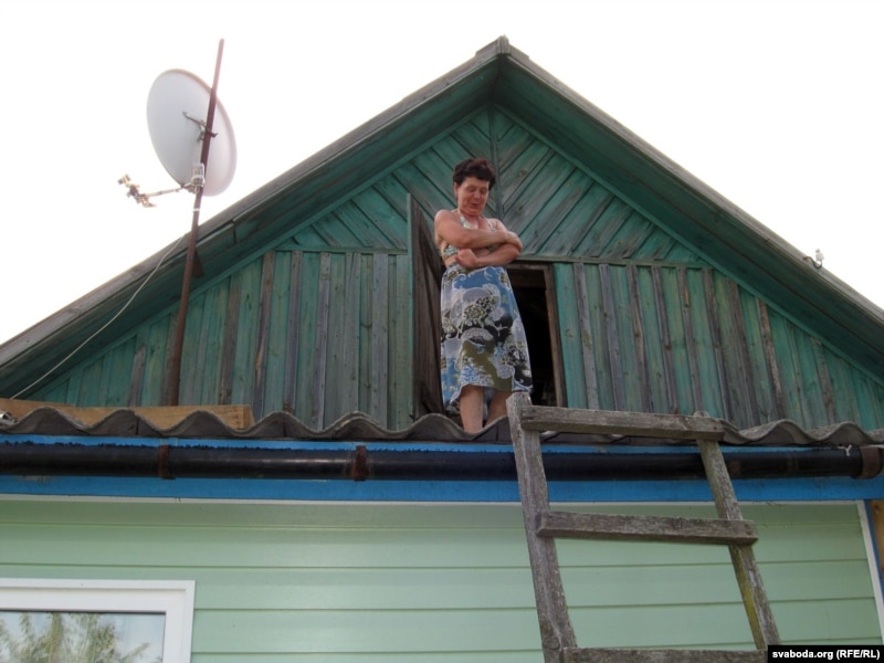 І ўсё-ткі атмасфэру не паказушнага, але шчырага і рэальнага аптымізму сёньня мала дзе сустрэнеш. Старэйшыну РТС, 60-гадовую спадарыню Валянціну Юшкевіч я застаў на даху хаты — на гарышчы прыбірала сьмецьце. Даведаўшыся пра мэту размовы, хуценька спусьцілася ўніз.