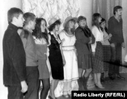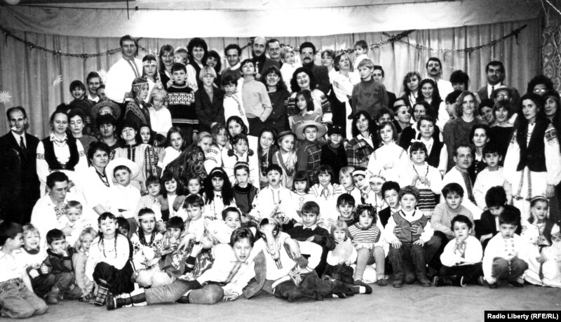 Майстроўцы зь дзецьмі і сябрамі. Каляды ў Палацы моладзі ў Менску. Сярэдзіна 1990-х.