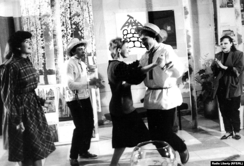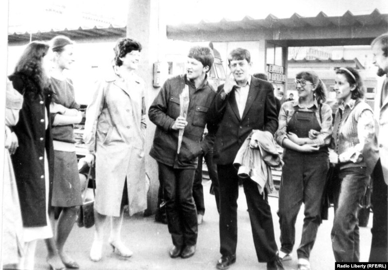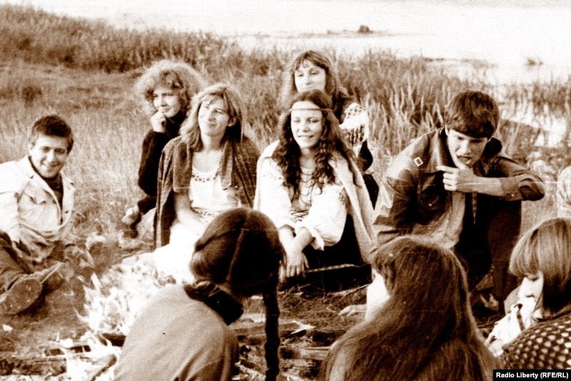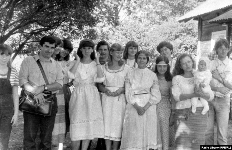 Талакоўская імпрэза, сярэдзіна 1980-х. Віялета Ефіменка, Уладзь Бараніч, Алена Клімовіч, Сяржук Вітушка, Вэрця Лазоўская.