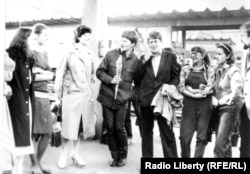 Майстроўцы сустракаюць Сяргея Шупу з войска, 1984 год. Алена трэцяя справа.