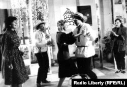 Вечарына Каліноўскага ў палацы Белсаўпрофа, 1984 год. Алена трэцяя зьлева.