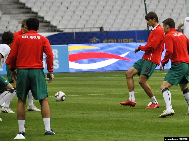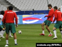 Трэніроўка беларускай футбольнай зборнай на парыскім "Стад дэ Франс"