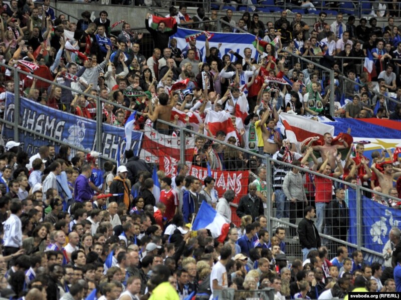Запаўняцца трыбуны «Стад дэ Франс» пачалі за 2 гадзіны да матчу, на кожныя некалькі месцаў ляжаў францускі сьцяг з плястыкавым дрэўкам — вось вам і сакрэт знакамітага мора трыкалёраў падчас хатніх матчаў зборнай Францыі.