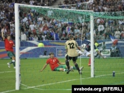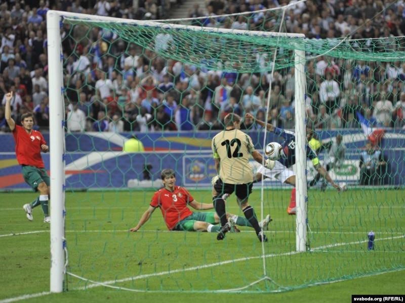 Малуда адпраўляе мяч у сетку беларускіх варотаў, але арбітры фіксуюць становішча «па-за гульнёй». Пасьля гульні Юрый Жаўноў патлумачыць, што пачуў сьвісток раней, таму расслабіўся ды прапусьціў мяч у сетку.