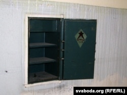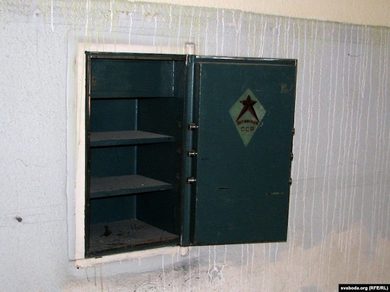 А вось умураваны ў сьцяну сэйф ня зьнесьлі. На дзьверцы сэйфу напісана «Литовская ССР».