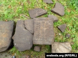 Надмагільныя пліты з габрэйскіх могілак выкарыстоўваліся як ходнік ля аднаго з дамоў.