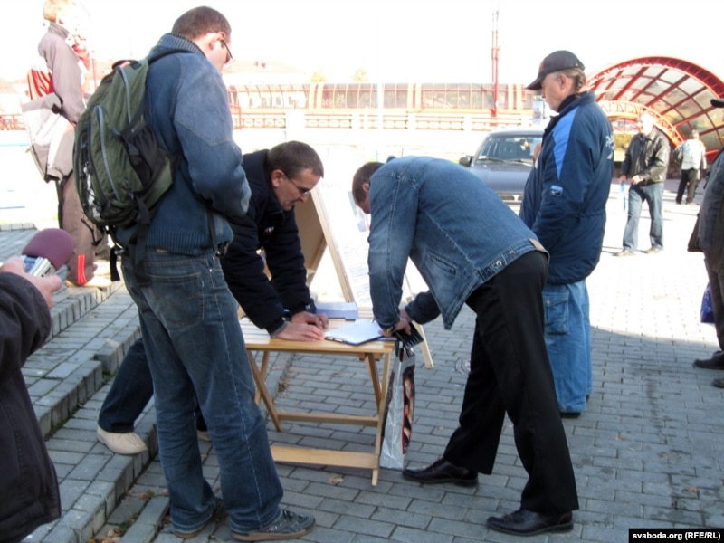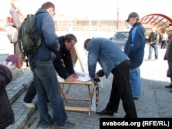 Першы пікет у Горадні: “Падпішуся за ўсіх кандыдатаў, бо ўладу трэба зьмяніць…”