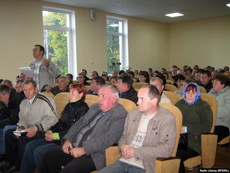 На самым пачатку сходу эканаміст сельгаскааператыва Віктар Дучак, устаў і перабіў выступ дырэктара сельгаскааператыва Валеры Яроміна, які пачаў тлумачыць, што сабраліся прагаласаваць за тое, каб выдзеліць зямлю пад будаўніцтва птушкафабрыкі.