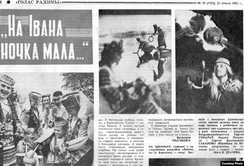 Сокалаў-Воюш: “Я ня быў дырэктарам філіі музэя, я быў кандыдатам у дырэктары. Дырэктар мусіў сысьці на пэнсію, і я мусіў заняць ягонае месца. І мы вырашылі адсьвяткаваць Купальле ў Мікалаеўшчыне. Мы знайшлі месца адпаведнае. Сабралася досыць шмат народу. Ну, і што? І пачалося Купальле. Як яно і павінна быць. Са сваім палітычным падтэкстам. Ён, безумоўна, быў. Як, безумоўна, былі й тыя, хто быў зацікаўлены “накрыць” гэтую антысавецкую групу. І проста адбывалася Купальле. Але рэч у тым, што на наступны дзень у Ракуцёўшчыне адбывалася зноў жа сьвята – Максіма Багдановіча, і мне трэба было там выступаць. І таму нас некалькі чалавек сышло адтуль раней. Бо мы мусілі сесьці на электрычку, даехаць да Менску і потым паехаць ужо ў бок Ракуцёўшчыны. І таму, калі людзей забіралі ў пастарунак, мяне там ужо не было. Нас некалькі чалавек паехалі раней. Вінцук Вячорка быў са мной, я ня помню, хто яшчэ. А гэтых людзей усіх забралі. Потым іх выпусьцілі, а мяне звольнілі з працы. Было сказана, што мы там высеклі лес, яшчэ нешта...