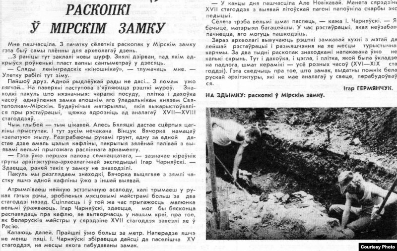 Занатоўка Ігара Гермянчука ў газэце “Голас Радзімы”, 1982 год. На здымку Вінцук Вячорка і Алесь Бяляцкі.