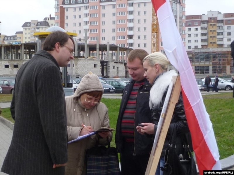 Жыхары Віцебску зьвярталі ўвагу на бел-чырвона-белы сьцяг, які лунаў на пікеце, а сябры ініцыятыўнай групы прадстаўлялі цікаўным мінакам прэтэндэнта на ўдзел у прэзыдэнцкіх выбараў.