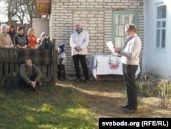 З могілак грамада накіравалася ў цэнтар Гарошкава, дзе ля чыста пабеленай роднай хаты ўжо з мэмарыяльнай дошкай паэту і працягвалася сьвята.