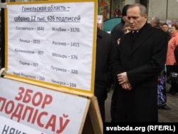 "Тут выходзіла, што нібыта гэтым кандыдатам павінен стаць я. Тады я адказаў, што не, не абавязкова так. Я згодны на іншыя падыходы. І на тое згодны, каб адначасова з усімі астатнімі кандыдатамі, незалежна ад таго, хто і колькі сабраў подпісаў, які ў каго рэйтынг, адначасова зьняцца ў тым выпадку, калі будзе відавочна, што ўлада правядзе выбары несвабодныя, несправядлівыя. Гэта значыць, што яна пойдзе на фальсыфікацыі. Зразумела, што фальсыфікацыі пачаліся ўжо сёньня. Спрацаваць супраць гэтага могуць два варыянты: гэта адзіны, і ня менш моцны крок — гэта зьняцьце ўсіх кандыдатаў. І тады Лукашэнка застанецца выбірацца сам з сабою. Мяне не бянтэжыць і гэты варыянт".