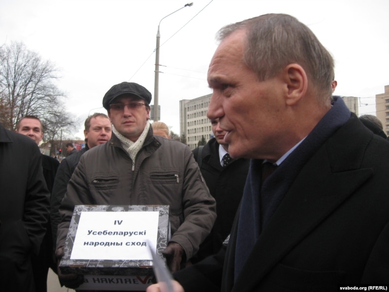 Някляеў, зразумеўшы, што яго ня пусьцяць на сход, папрасіў сябраў аргкамітэту зачытаць ягоны зварот да ўдзельнікаў сходу і перадаць скрыні з 27 тысячамі подпісаў. Чыноўнік з адміністрацыі Ленінскага раёну Павал Піскуноў скрыні ўзяць адмовіўся, пажартаваўшы, што там можа быць хабар. Тэкст звароту зь неахвотай узяць пагадзіўся, аднак зачытаць яго не паабяцаў.