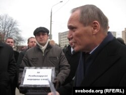 Але далей ганку ліцэя БДУ Ўладзімера Някляева не пусьціла шматлікая ахова. Праўда, пад націскам сябраў ініцыятыўнай групы Някляева і журналістаў на ганак выйшлі прадстаўнікі адміністрацыі Ленінскага раёна.