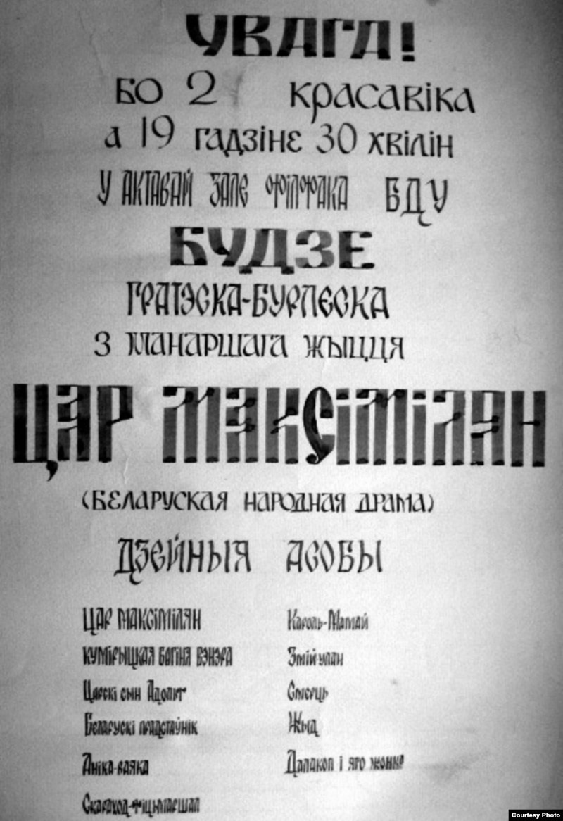 Алена: “Парнат” помніцца... Але гэта было пасьля “парнату”. Мусіць, на першым курсе. І хто нас туды завалок, у Майстроўню? Мусіць, Геначка, Мядзіла і Радзівон. Сказана было: пайшлі сходзім, і мы пайшлі”.
