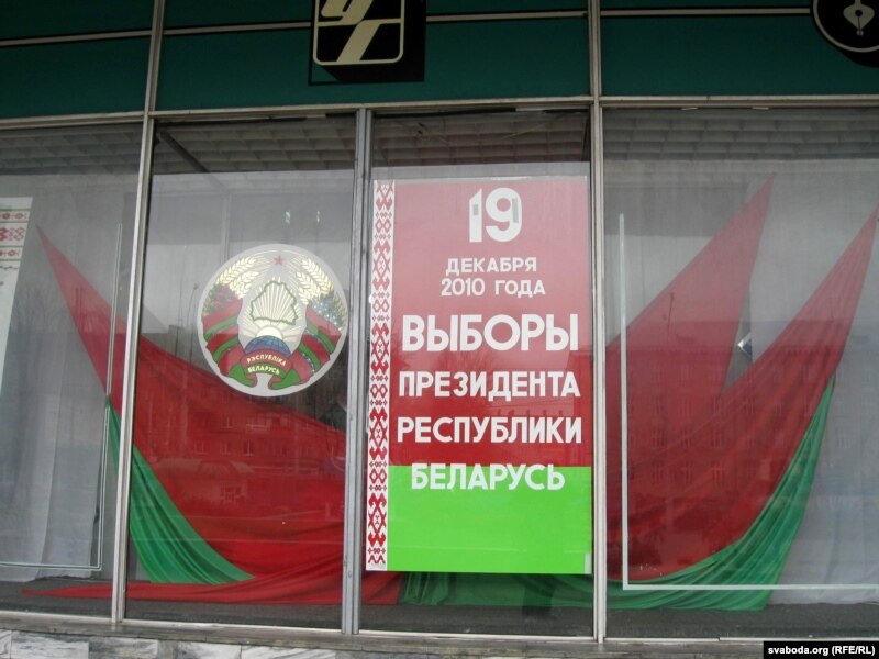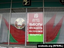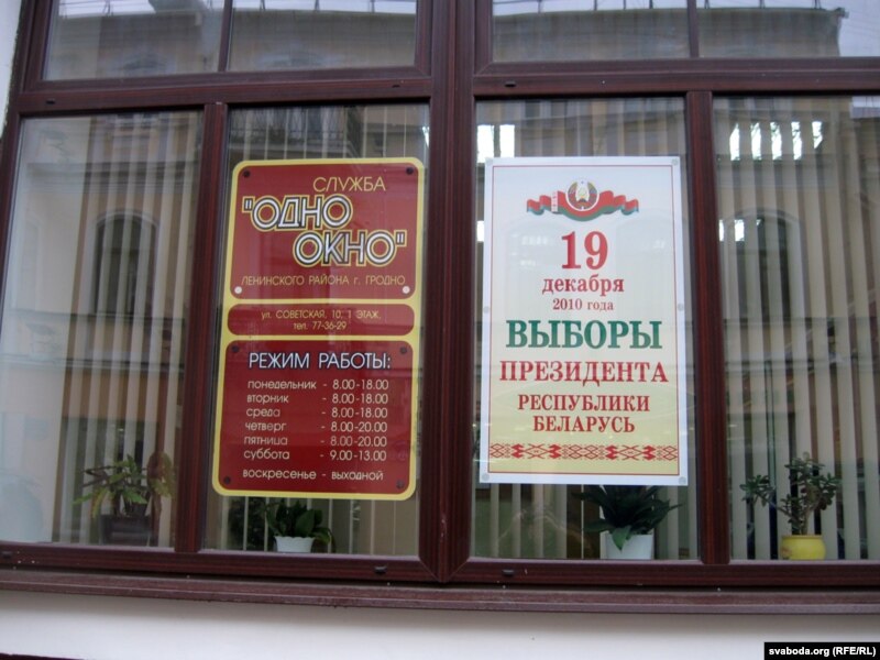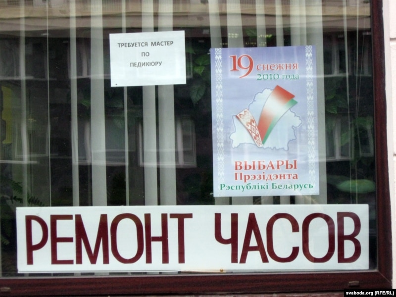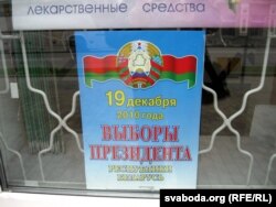 Нават на цэнтральных вуліцах Горадні можна толькі дзе-нідзе ўбачыць на вокнах крамаў альбо дзяржаўных устаноў бляклыя плякацікі, на якіх напісана, што выбары прэзыдэнта адбудуцца 19 сьнежня.