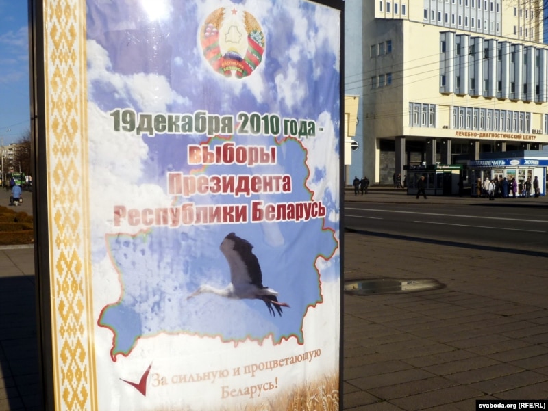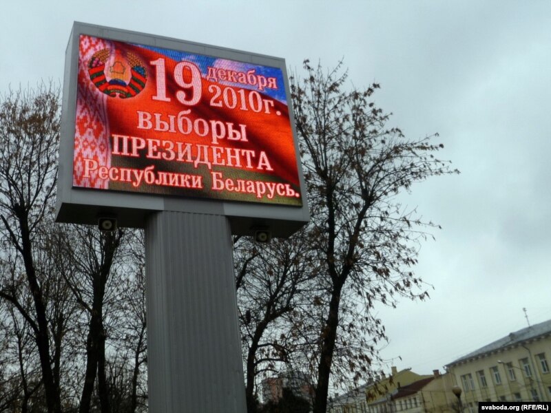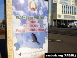На вуліцах беларускіх гарадоў і вёсак павялічваецца колькасьць афіцыйнай перадвыбарчай агітацыі. Практычна ўсе расьцяжкі, плякаты, білборды аформленыя па-расейску. Беларуская мова ігнаруецца.