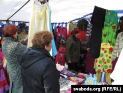 Але праз дарогу, дзе невялікі кірмаш, пачынаецца яўна іншае жыцьцё. Людзей каля шапіка 45-гадовай Галіны з Украіны яўна бракавала.